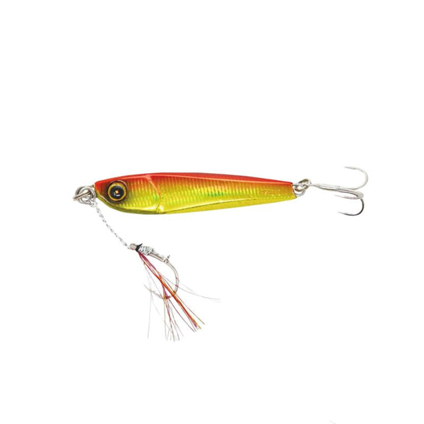 Está montado con un assist estilo sabiki en la parte superior y un triple en la parte inferior.