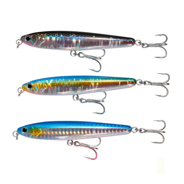 Hart Bullet 95S, Stick-bait pequeño y de cuerpo afilado. Sus grandes contrapesos internos y su gran aerodinámica nos ayudan a lanzarlo lejísimo. Su afilado perfil le confiere un rápido y errático walking subsuperficial capaz de enrabietar y atraer hasta al más inactivo de los depredadores. Lubinas, jureles y pequeños túnidos no podrán resistirse a sus encantos.
